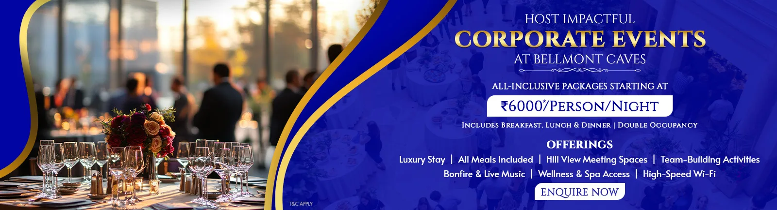 Be it a leadership summit, product launch, or annual retreat—Bellmont Caves blends 5-star service with a nature-driven atmosphere that elevates every agenda.