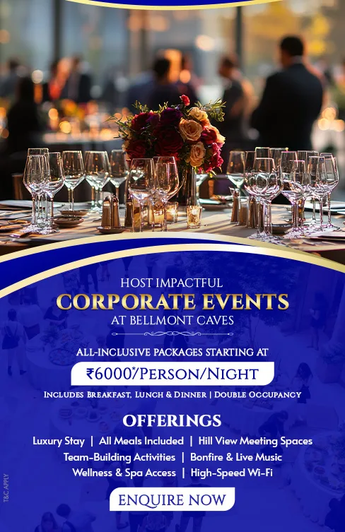 With 40 uniquely designed cave-style rooms, antique interiors, and nature-inspired architecture, Bellmont Caves is not just a venue—it’s an immersive experience. From strategy sessions in our well-equipped meeting spaces to outdoor team-building activities surrounded by raw natural beauty, every element is thoughtfully curated. Whether you’re planning a focused boardroom meet, a product launch, or a relaxed corporate celebration, we offer personalized hospitality, modern amenities, and a distinctive ambiance that elevates every event.